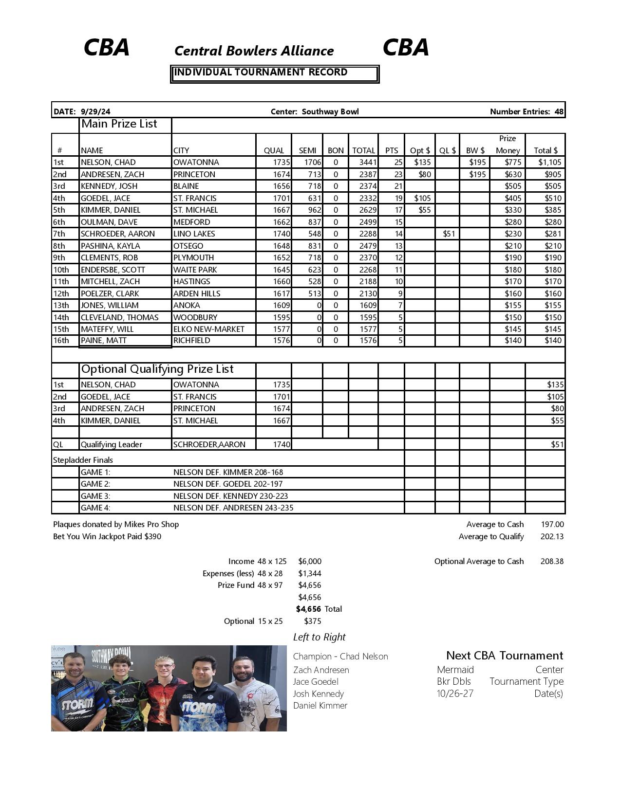 DownloadCBA MN Team Challenge Southtown Prize List (pdf)